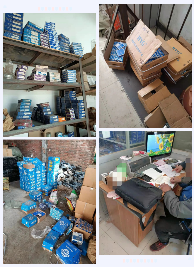 假冒軸承,并現(xiàn)場出具相關(guān)巡查鑒定材料,隨后對河間市銷售軸承市場進(jìn)行全面巡查,先后對七家商鋪進(jìn)行巡查,涉案假貨全部扣押