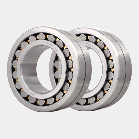 此類軸承具有對稱滾子,內(nèi)圈有擋邊。導圈在兩列滾子中間,從內(nèi)圈定心。保持架為一體式黃銅或鋼制機削架。CA 及 ECA 型采用 C 型式的表面加工,ECA 型帶有加強滾子,從而提高承載能力。